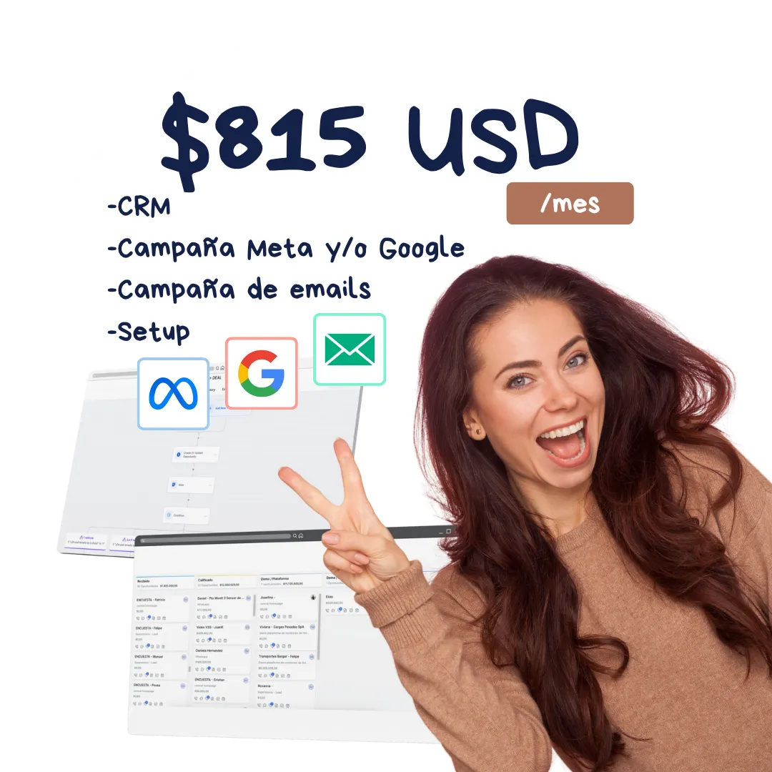 Diseñado para empresas que necesitan la solución completa, todo-en-uno. Ideal si quieres optimizar mejor tus ventas y prospectos durante todo el proceso: desde el primer contacto hasta el cierre. Con este plan tu equipo trabaja más ordenado y tú tienes control total.